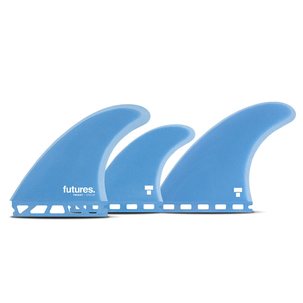 El set Big Wave de Twiggy está optimizado para olas XXL, con foils diseñados para máximo control y rendimiento. Usa thruster cuando necesita estabilidad en olas monstruosas, y quad cuando busca velocidad en tubos largos. Es su configuración clave para condiciones extremas.