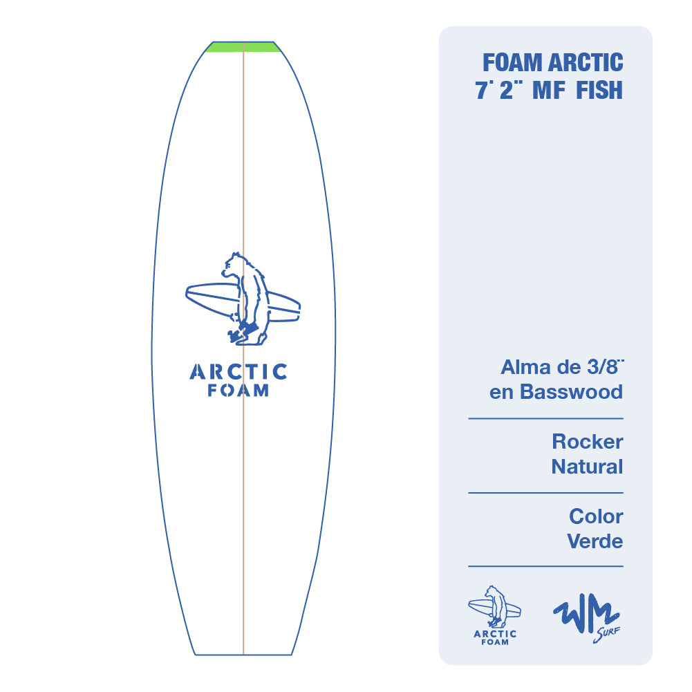Foam Arctic 7'2'' FISH Verde con Rocker Natural