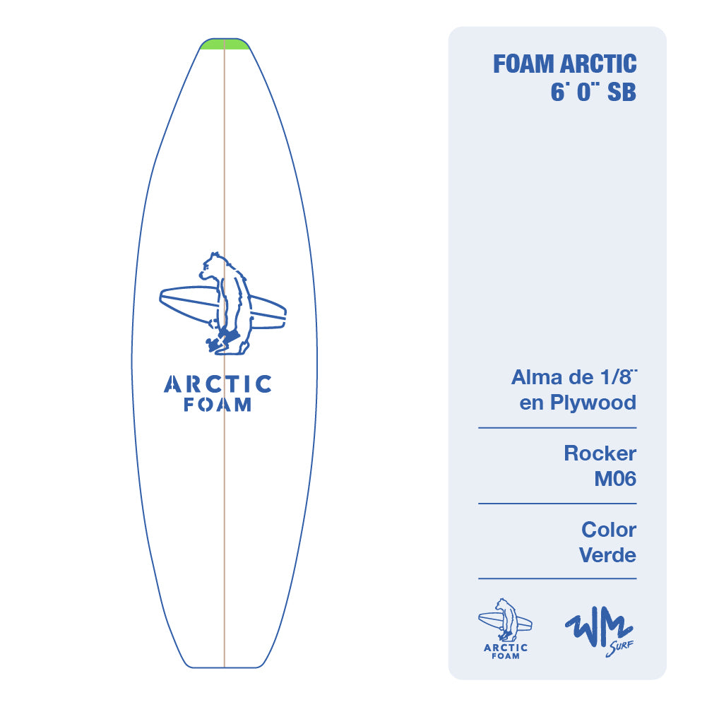 Foam Arctic 5'8'' SB Verde con Rocker Natural