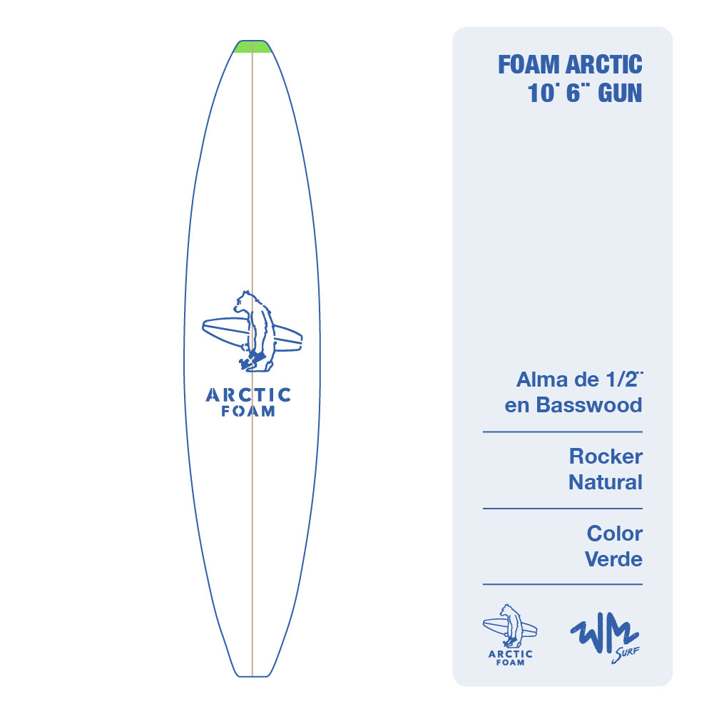 Foam Arctic 9'9'' GUN Verde con Rocker Natural