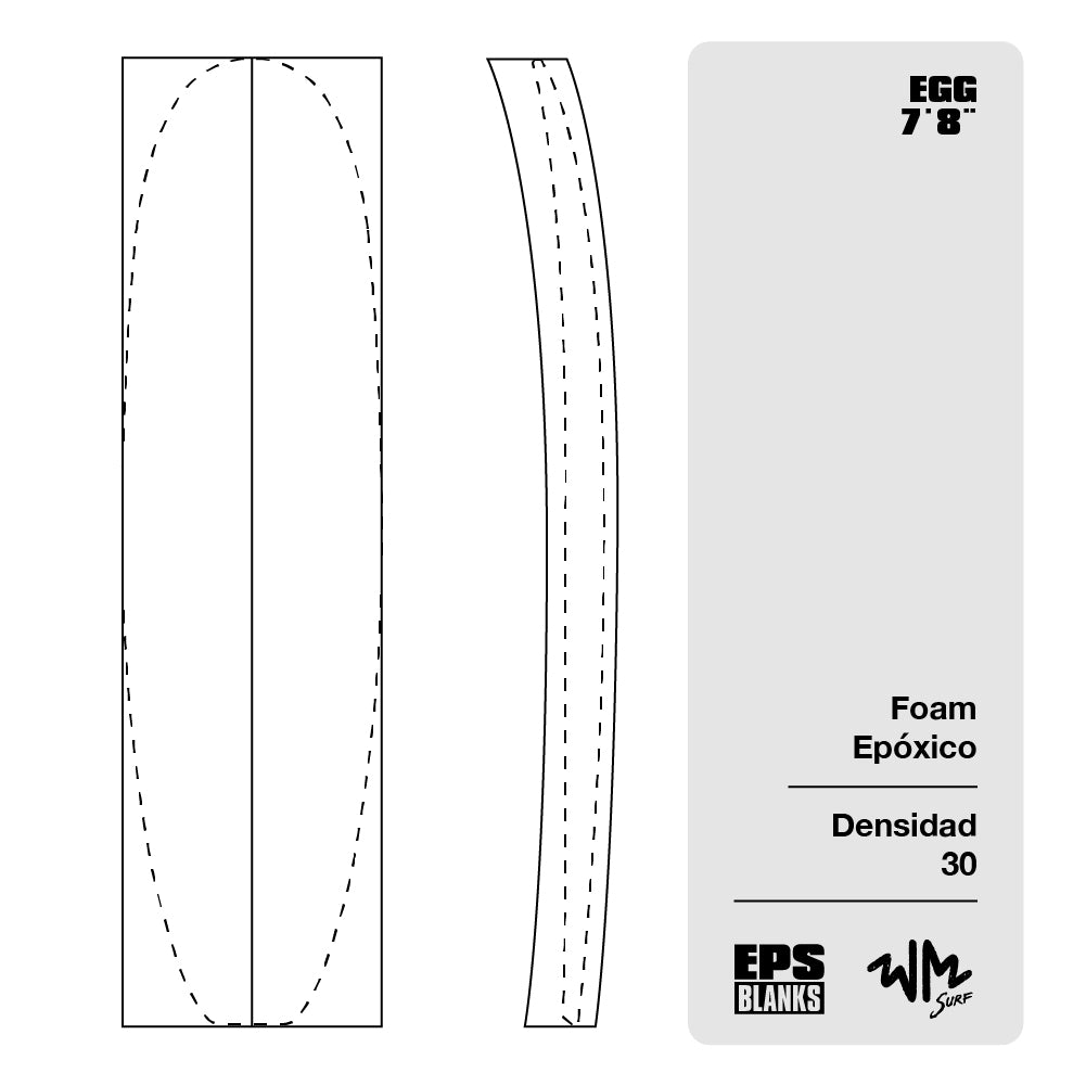 Foam Epoxico EPS Blanks 7'8'' EGG de Densidad 30