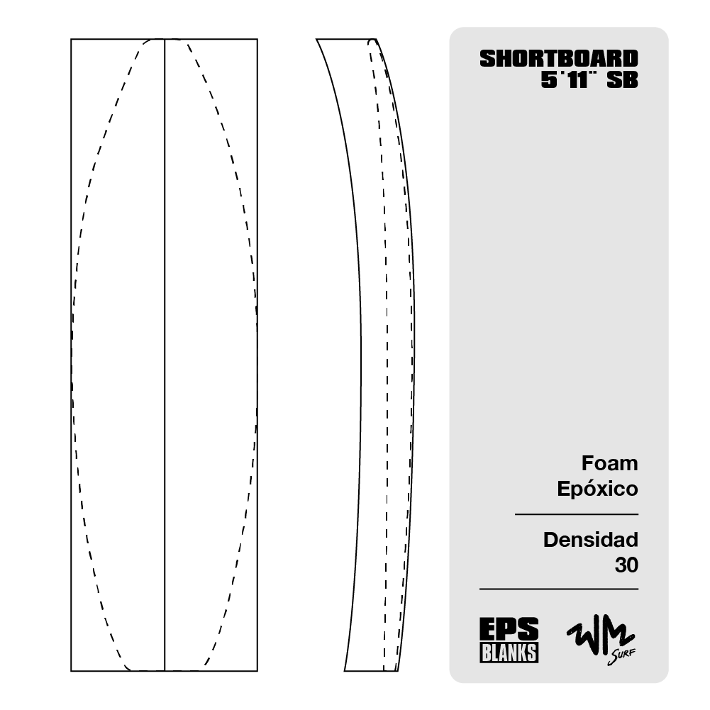 Foam Epoxico EPS Blanks 7'11'' SB V2 de Densidad 30