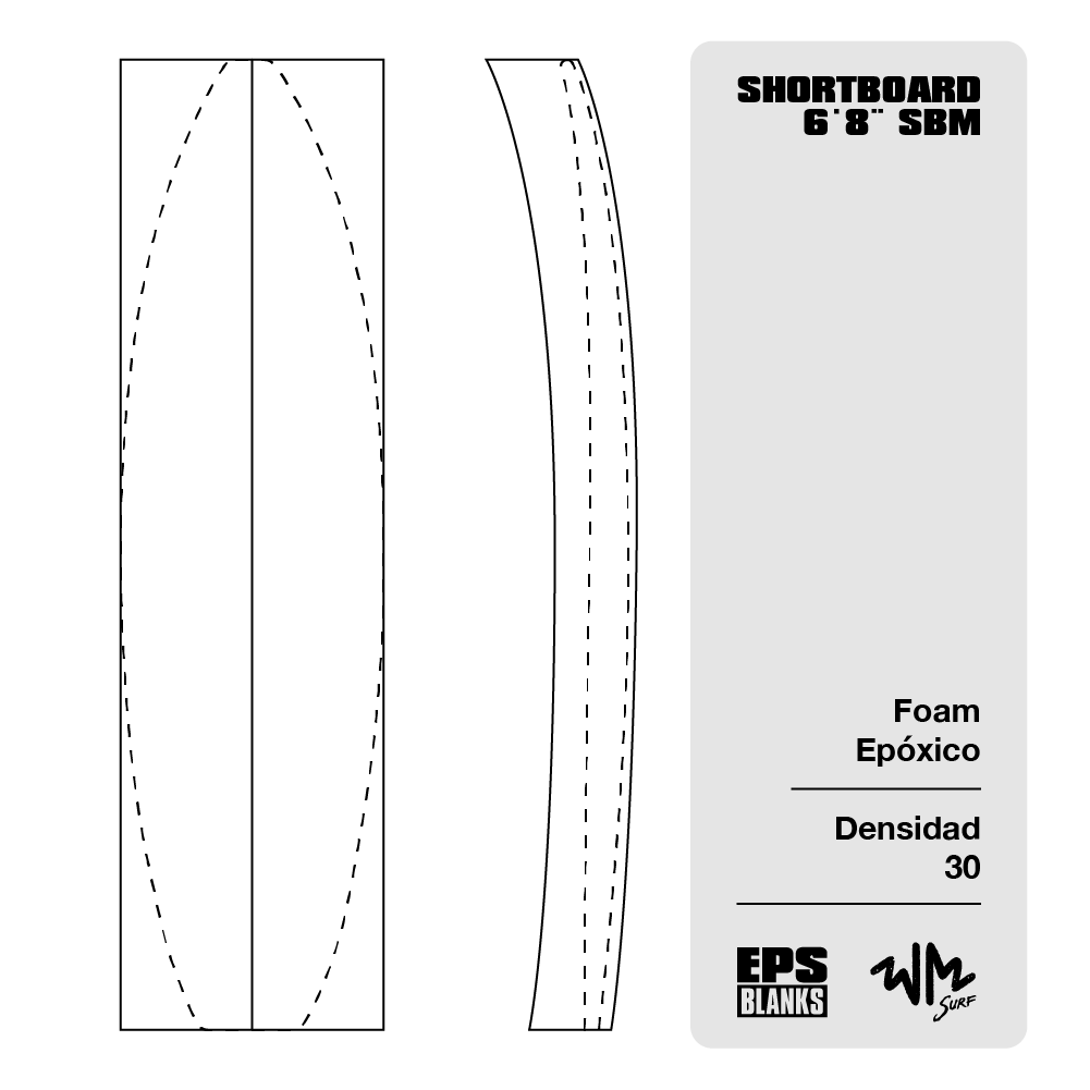 Foam Epoxico EPS Blanks 6'8'' SBF de Densidad 40