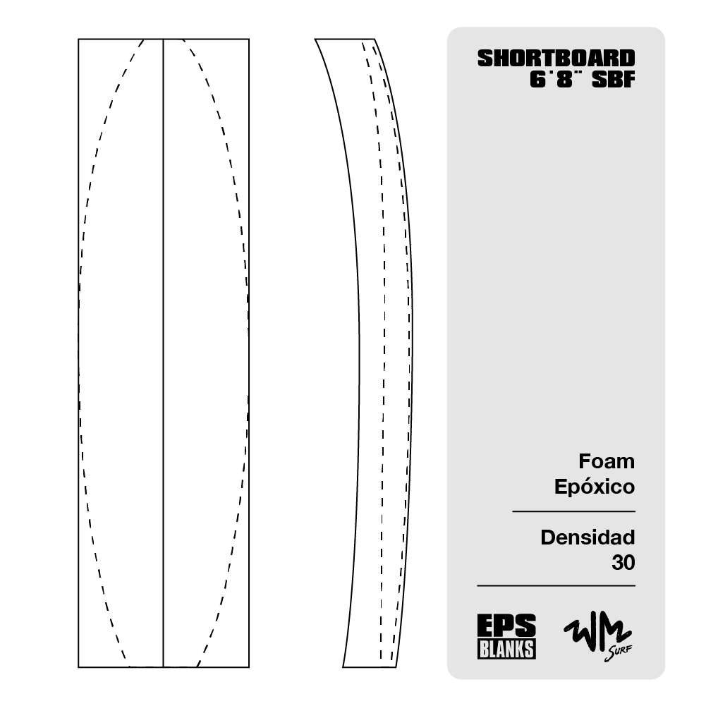 Foam Epoxico EPS Blanks 6'8'' SBM de Densidad 30